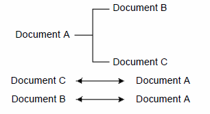 In addition to creating folders to organize your documents, you can also create associations using the Related Items option. When you add a related item to your document, you are creating a bidirectional association or link. For example, if you link Document A to Document B and Document C, Document A would be listed as a related item for Document C and Document B: